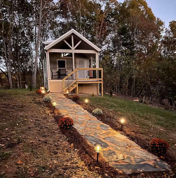 Nestled on the Cornett Deal Christmas Tree Farm, this charming new tiny home offers a peaceful mountain escape. Guests can stroll through rows of Fraser firs, relax by the pond, play outdoor games, or visit the Cardinal’s Nest Craft Shop for handmade treasures. Just a short drive from Boone and the Blue Ridge Parkway, it’s perfect for a quiet getaway, blending modern comforts with rustic mountain character for a truly memorable stay.