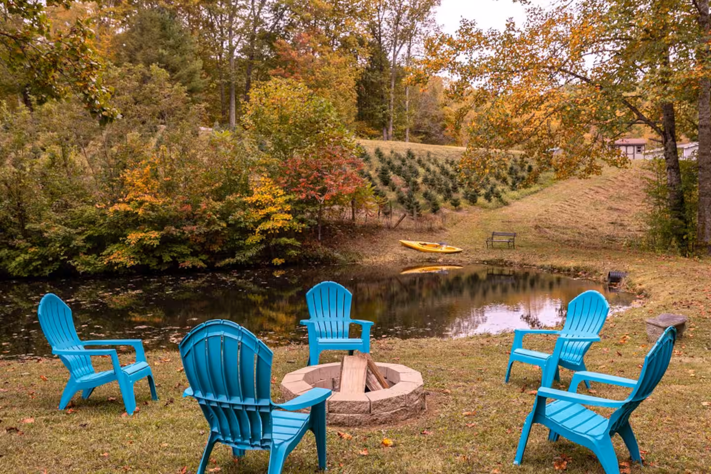 Your private covered porch is perfect for sipping morning coffee or evening drinks while taking in the mountain air. Guests are also welcome to wander the farm, stroll among rows of Fraser firs, relax by the pond, or enjoy a game in the open outdoor spaces.